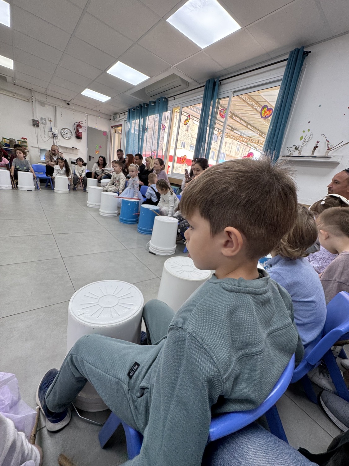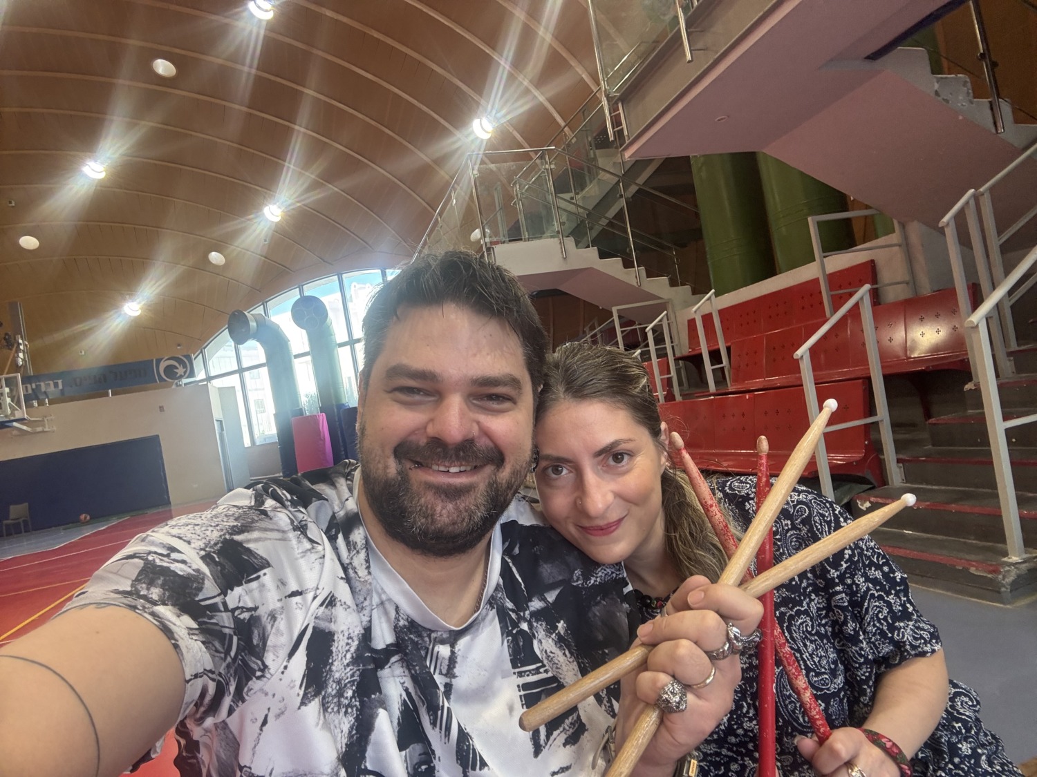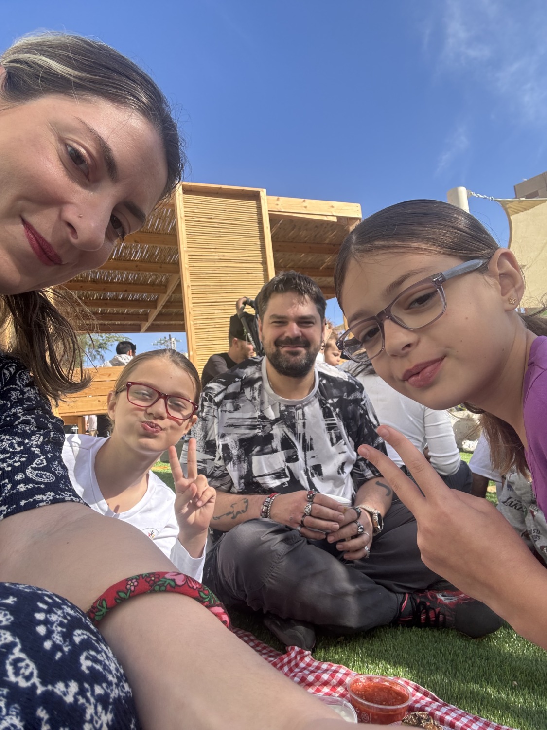 В пятницу наш ждал день семьи в школе девочек. В программе был семейный пикник, выставка работ детей и воркшопы для родителей по выбору. Мы с Егором выбрали барабаны.