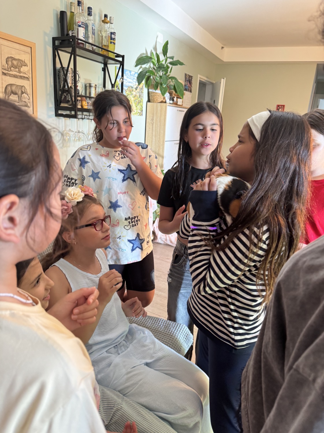 К нам домой пришли почти все девочки из класса, и Мия была просто на седьмом небе от счастья. А я в это время курсировала с салфеточкой, героически спасая чистую гостиную от крошек, брызг уксуса после опытов и прочих последствий маленькой, но очень увлечённой науки 😄
