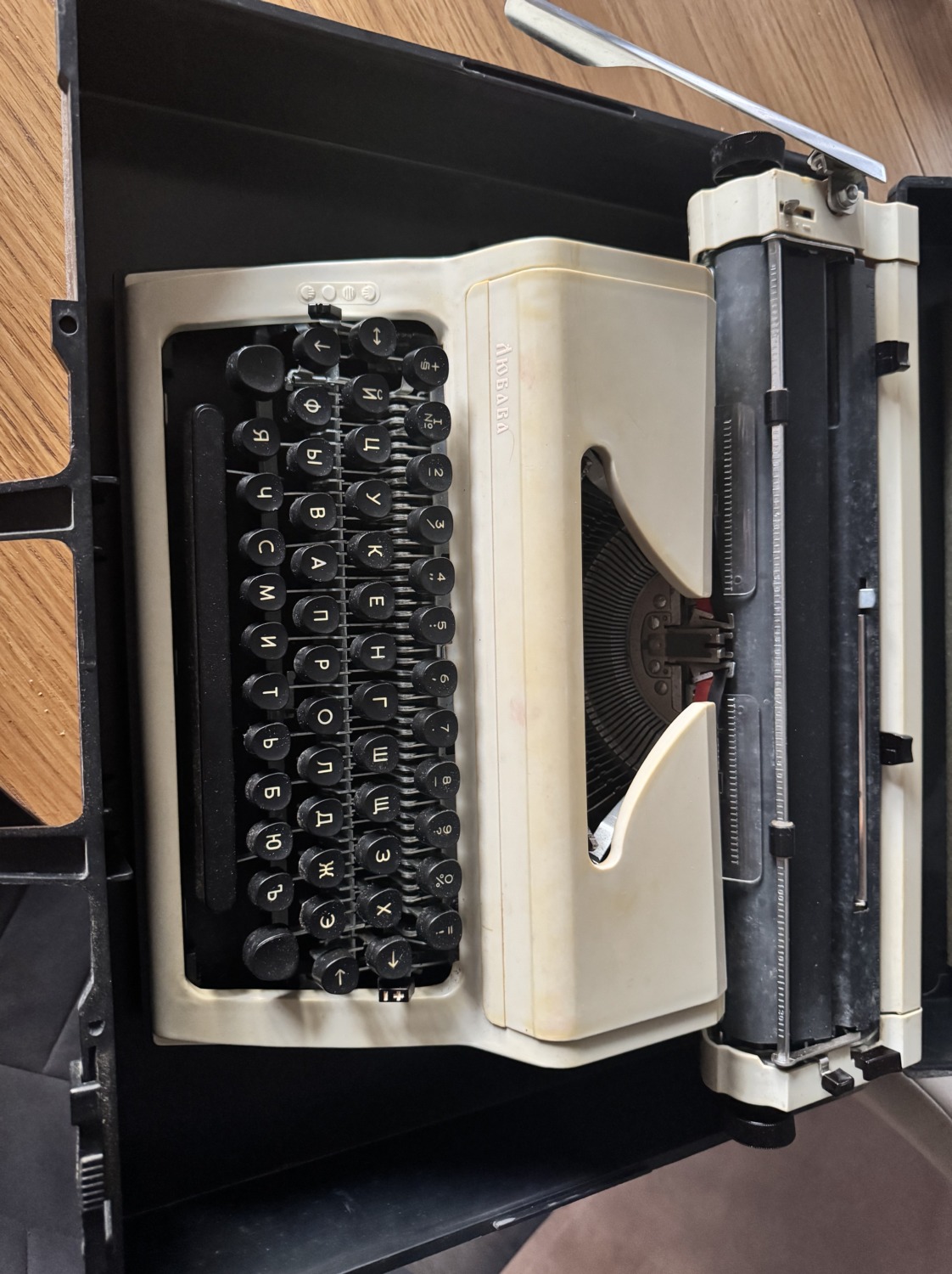 Егору наконец-то пришёл один из его подарков на день рождения — настоящая печатная машинка на русском языке «Любава», его ровесница.