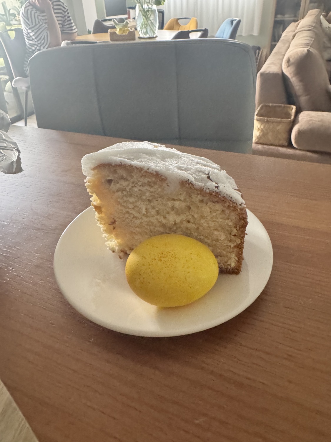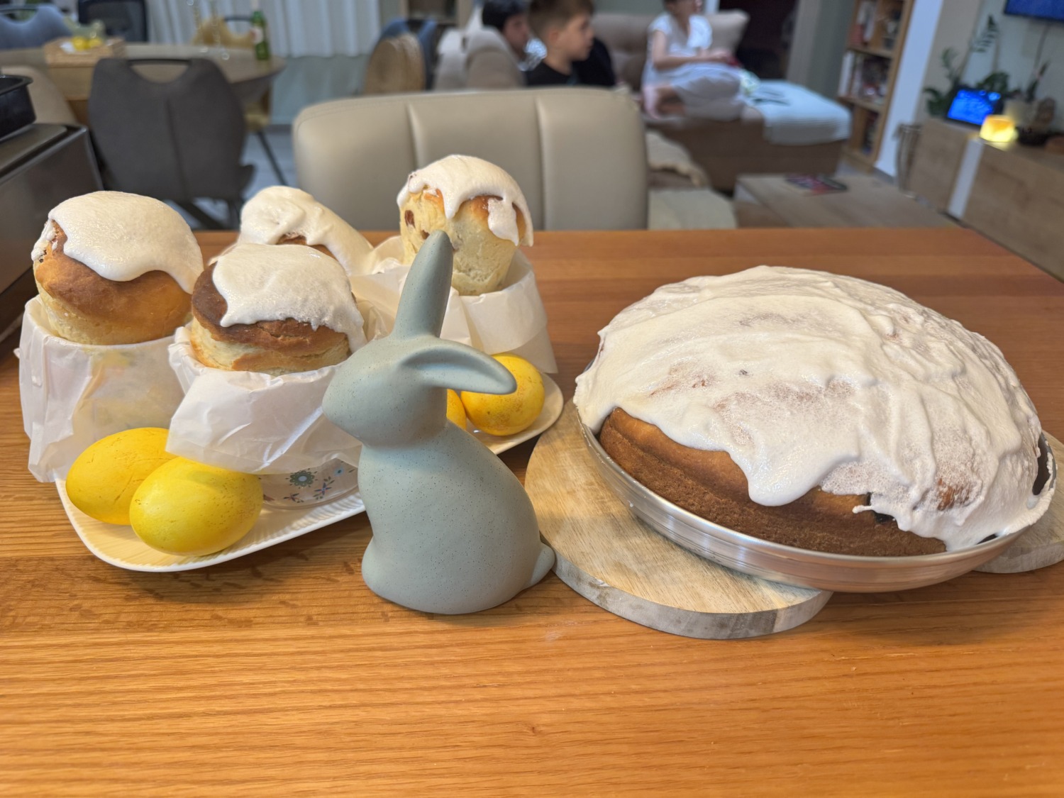 И у нас дома пасхальная выпечка и яйца, окрашенные куркумой: