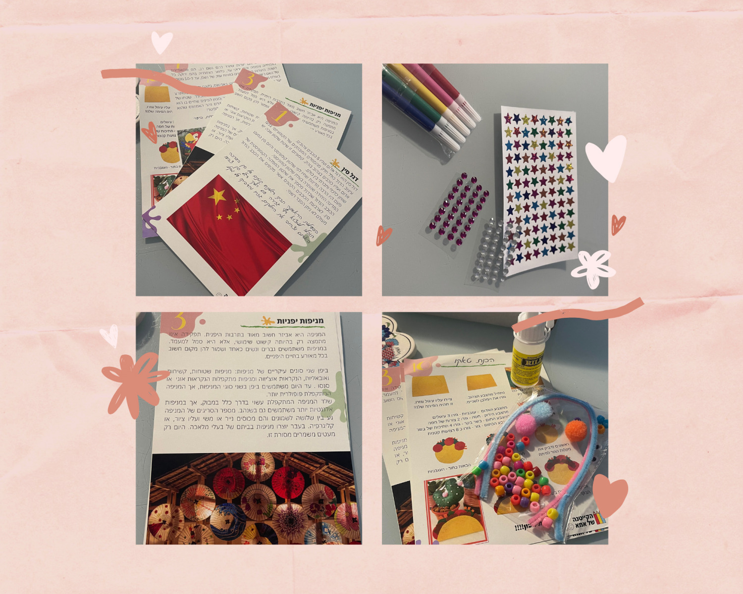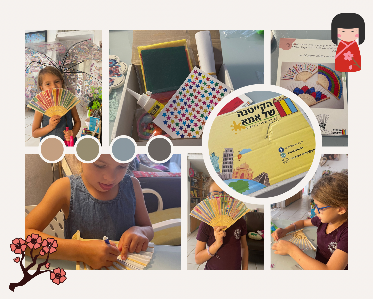 «Летний лагерь с мамой» – приобрели такой набор, он позволяет познавать мир через творчество. На этот раз взяли пробный – «вокруг света», но каждая коробочка,обычно, рассказывает об отдельной странице – туда входит информационный лист о стране и идеи + материалы для творчества. Например, если Япония, то раскрашивали веер. Если Мексика, то создавали тако из фетра. Девочкам очень нравится, будем заказывать еще.
