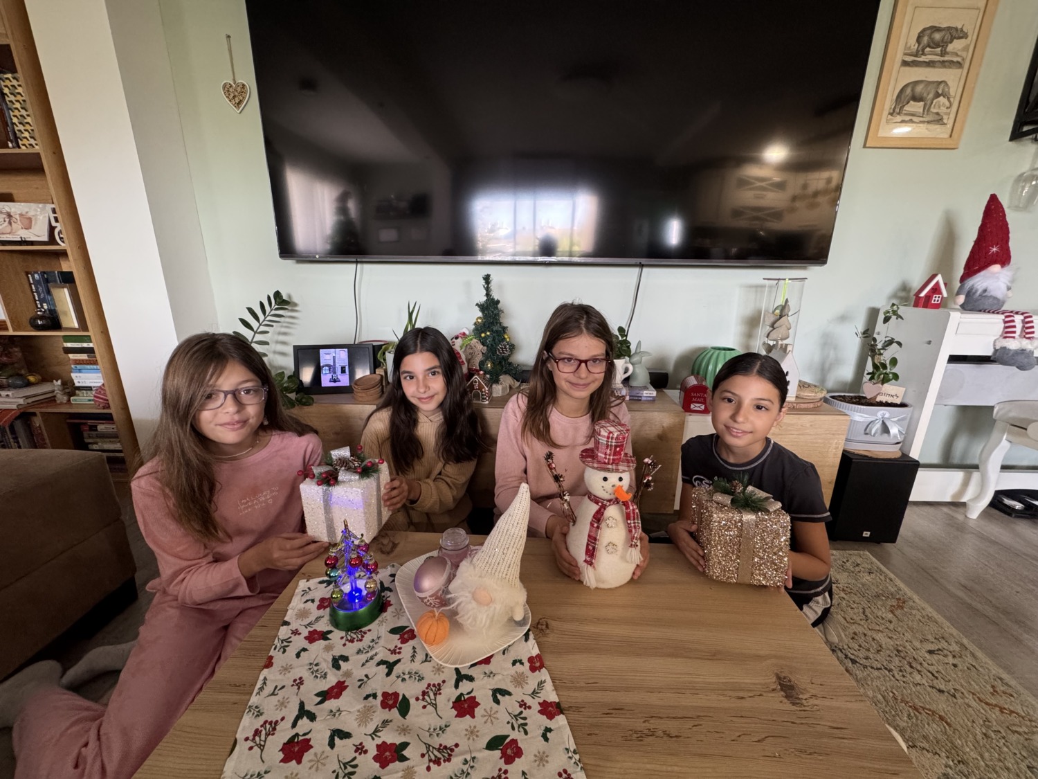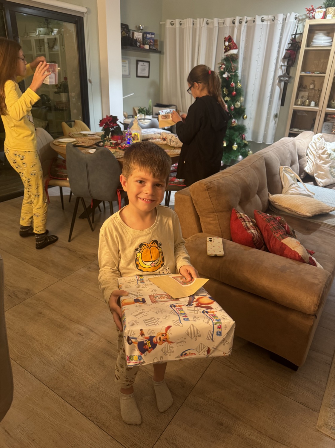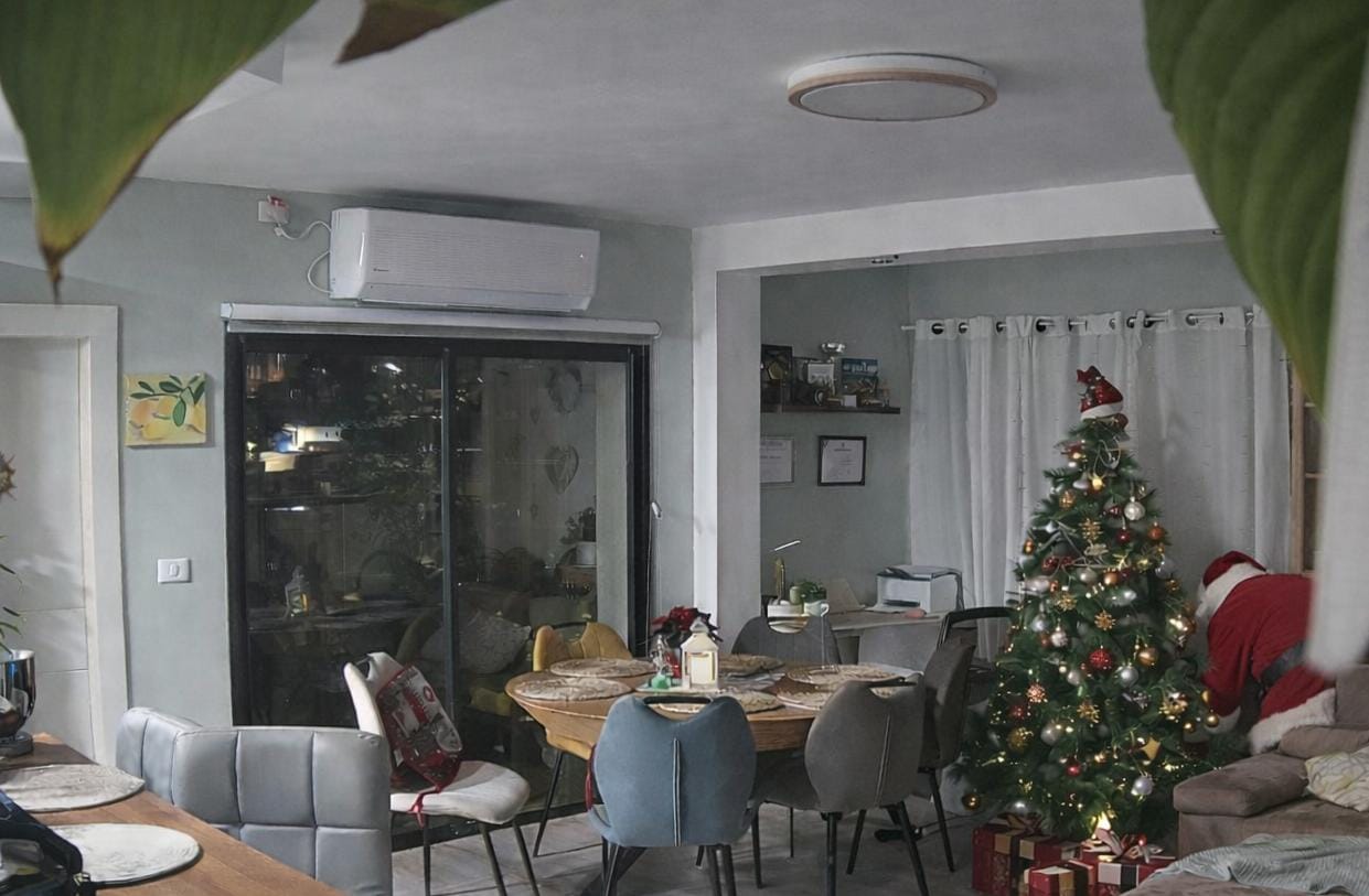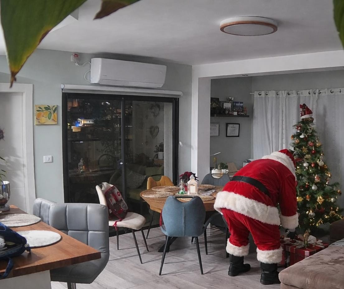 Несмотря на то что классический новогодний стол был в пятницу, 31-го мы всё равно отметили — ведь как встретишь Новый год, так его и проведёшь. Отметили сладостями, подарками и даже при помощи искусственного интеллекта: показали детям, как Санта «появился» на нашей домашней камере. 🎄✨