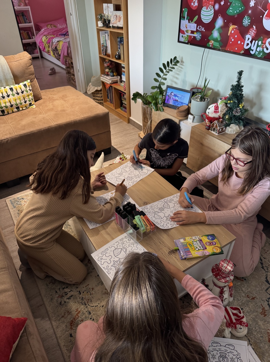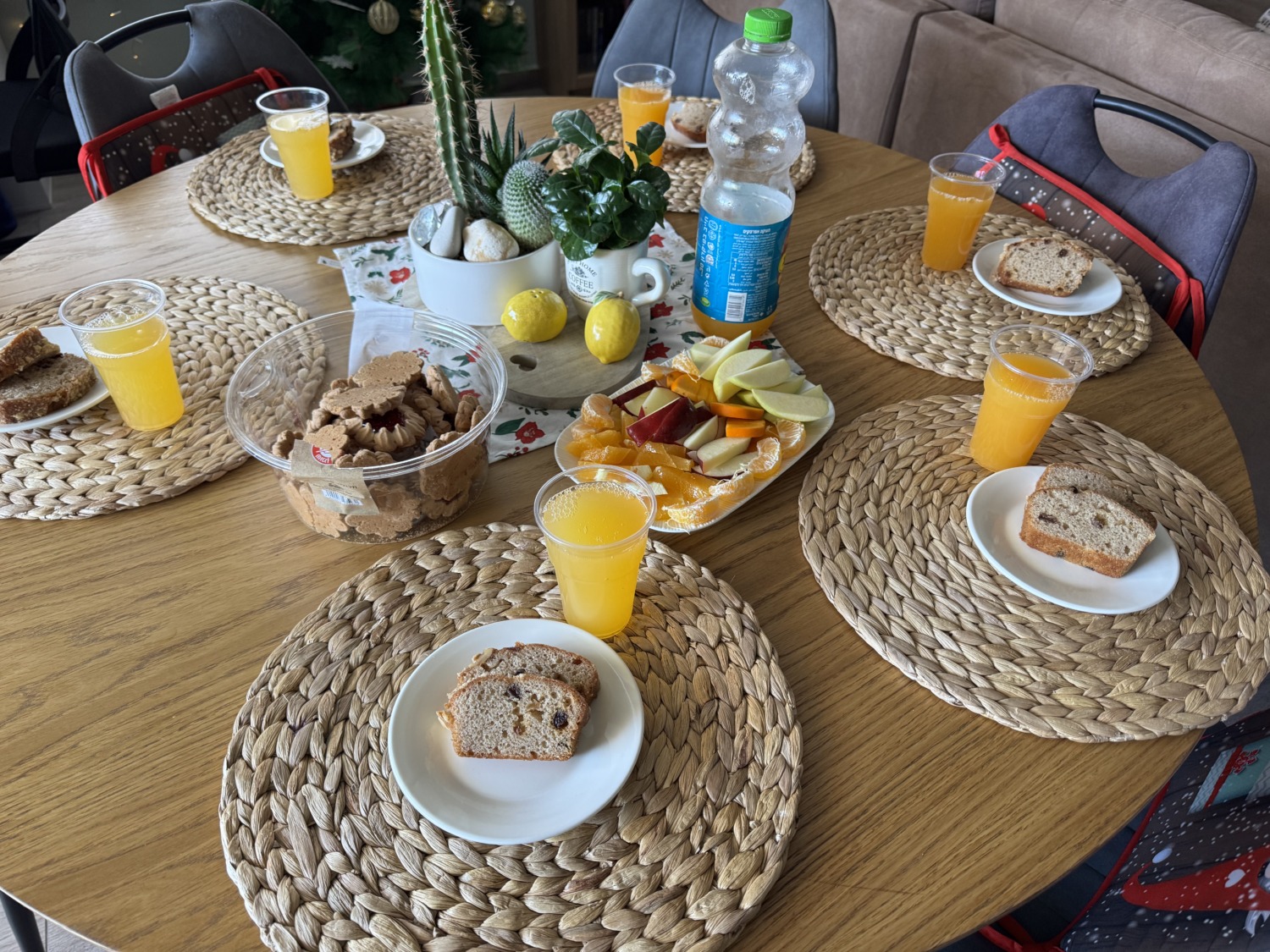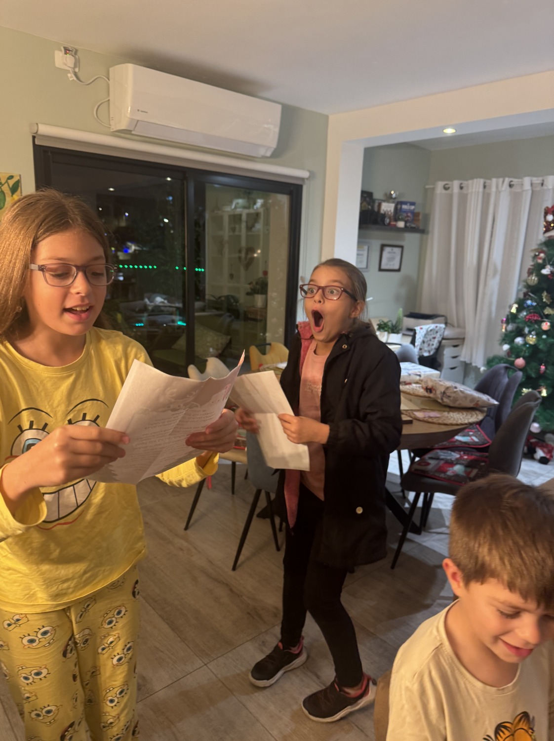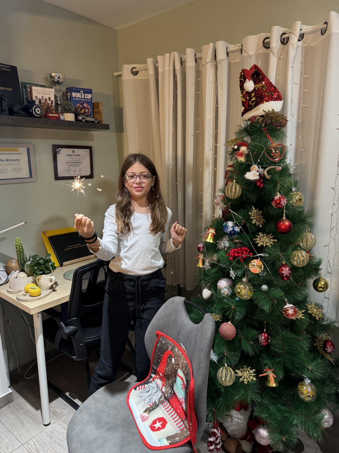 Несмотря на то что классический новогодний стол был в пятницу, 31-го мы всё равно отметили — ведь как встретишь Новый год, так его и проведёшь. Отметили сладостями, подарками и даже при помощи искусственного интеллекта: показали детям, как Санта «появился» на нашей домашней камере. 🎄✨