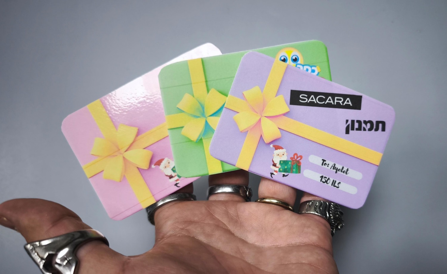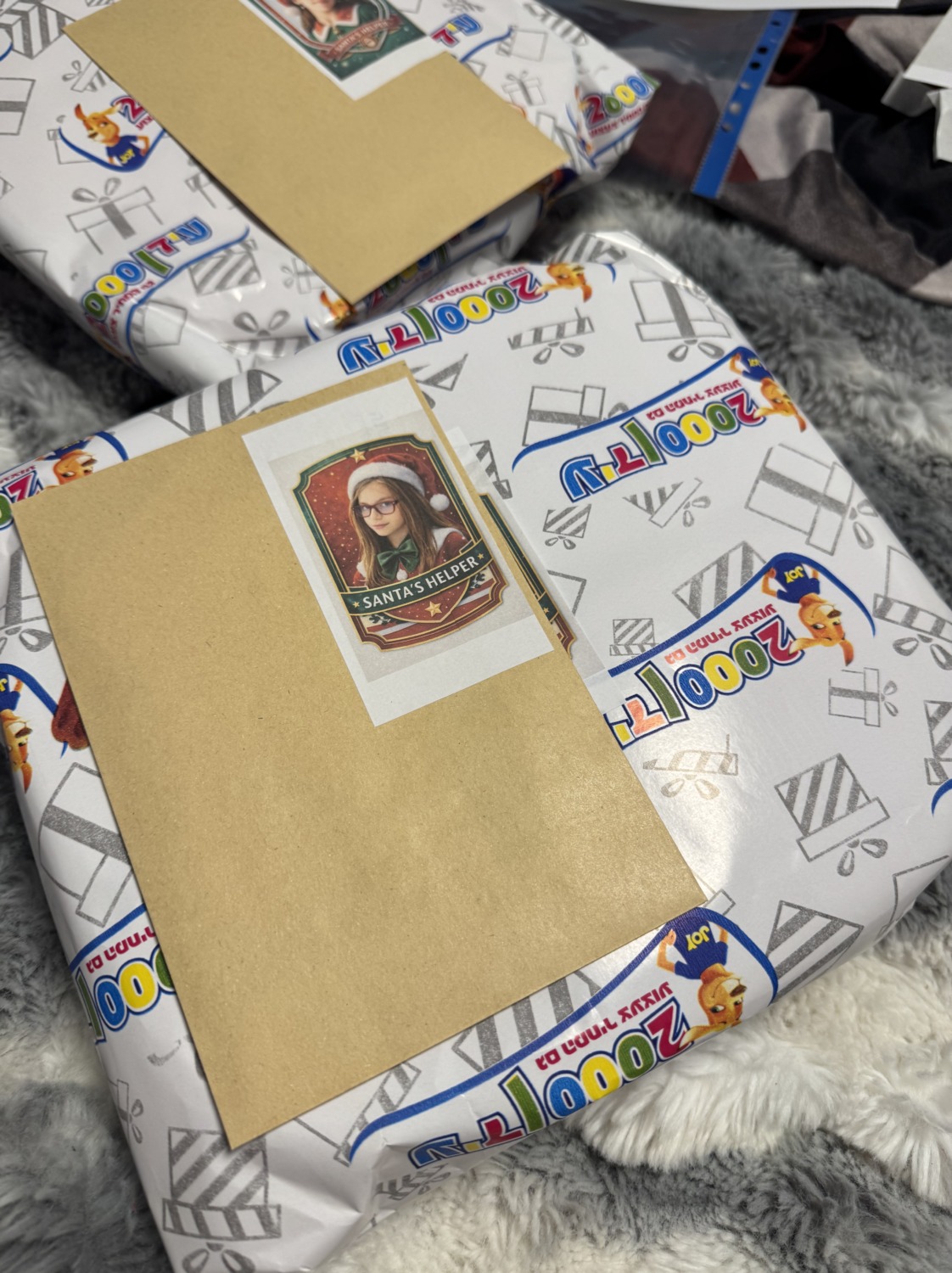 Санта и сертификаты (тоже распечатанные Егором) в любимые магазины подарил. В четверг ходилизакупаться.