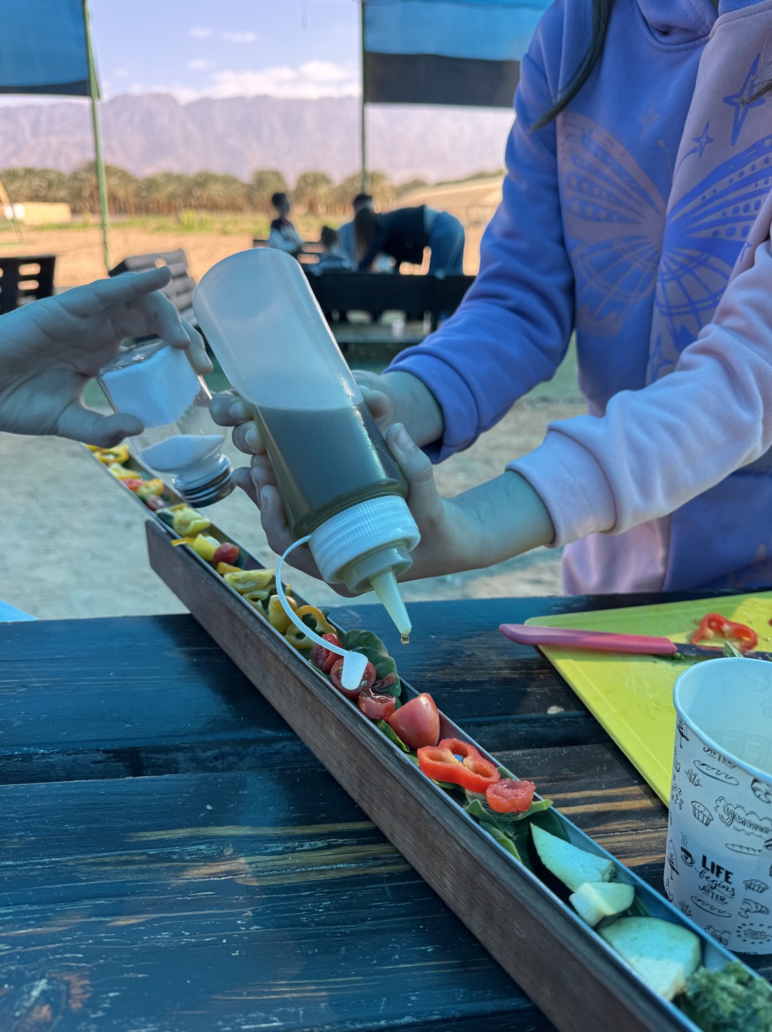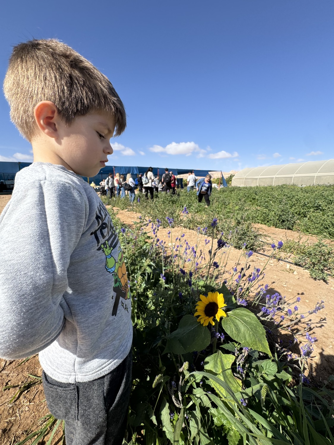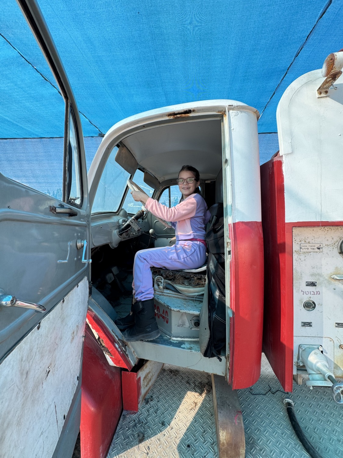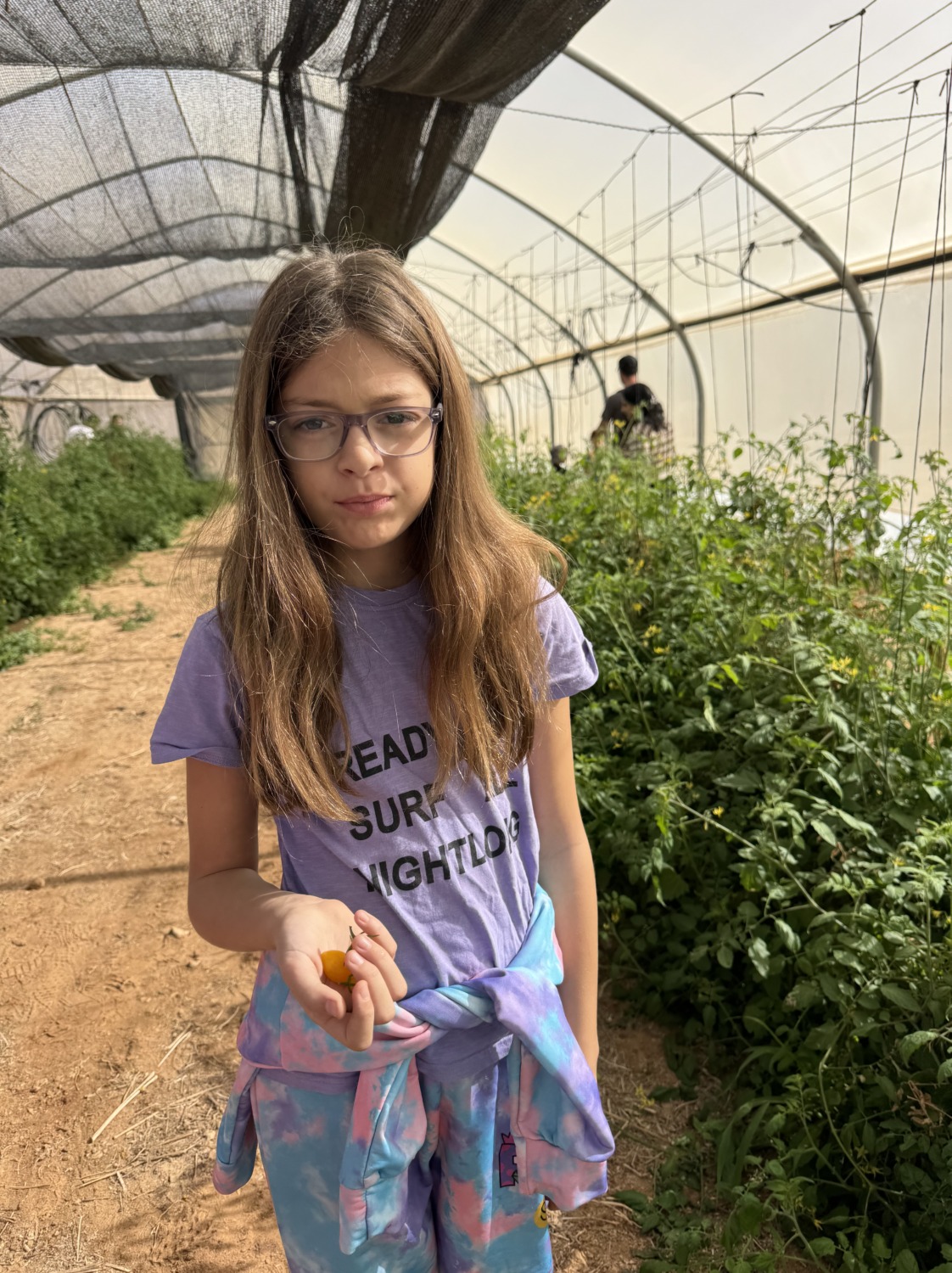 В Шабат, пока Егор работал в морском центре, мы с детьми отправились в соседний кибуц на ежегодное мероприятие «5 чувств». Там можно было осязать, слушать, пробовать, видеть и обонять: теплицы с помидорками, приготовление овощей в солнечной печке, знакомство с местными травами — и, конечно, возможность полазать на тракторе и пожарной машине. День выдался по-настоящему солнечным.
